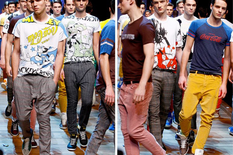 D&G wrapped up their fall ’11 menswear show with models pouring out onto the runway in brightly colored graphic tees...