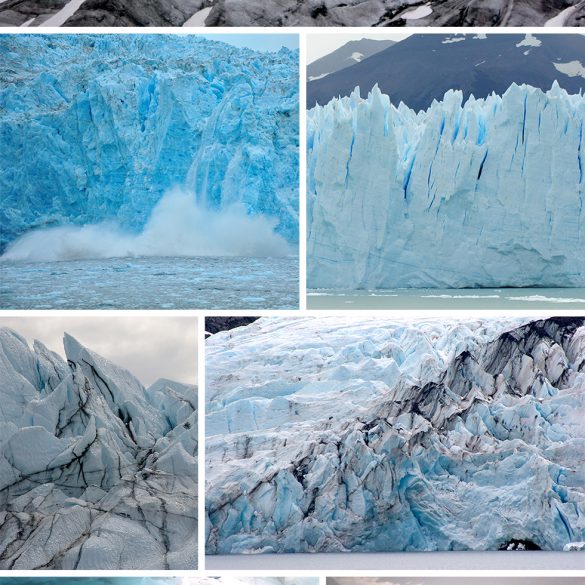 Images via: (clockwise from top) “Mendenhall Glacier – Juneau, Alaska” by Robert Raines (cropped from original), “Perito Moreno” by Rachel Hobday (cropped from original), “Portage Glacier” by Antti T. Nissinen,...
